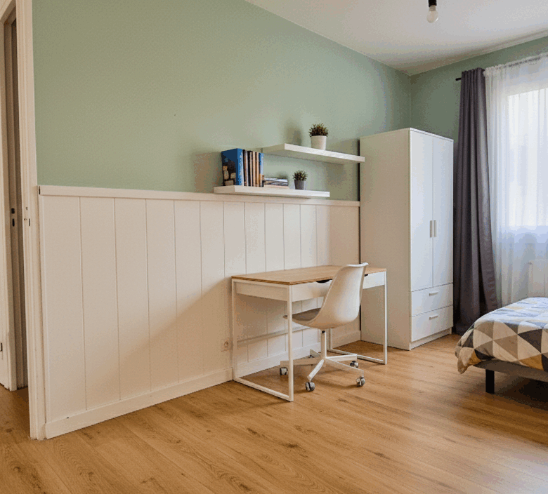 Il se compose d’un grand salon-séjour lumineux avec balcon, d’une cuisine spacieuse avec loggia, de 2 chambres, d’une salle de bain et d’un WC séparé.