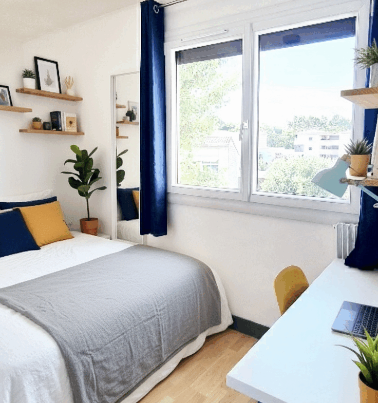 - Quatre chambres individuelles (surface modulable de 9 à 14 m²).