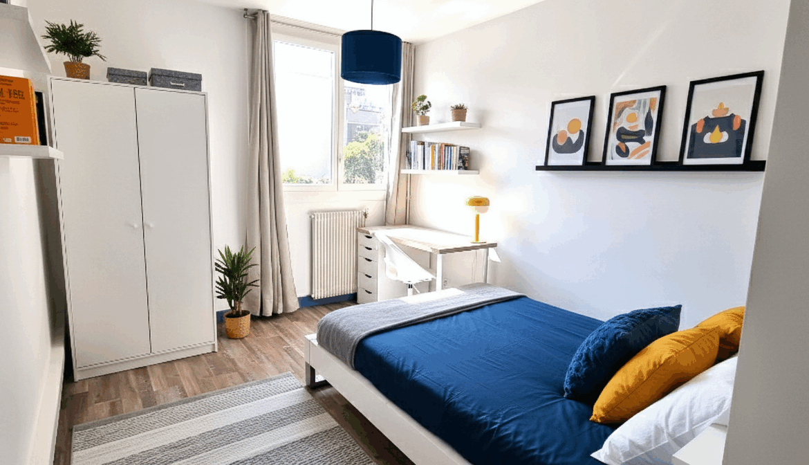 Située dans un grand appartement lumineux et climatisé de 106 m², cette colocation est entièrement équipée et pensée pour les études. L’appartement comprend 4 chambres de 11m2 chacune environ.